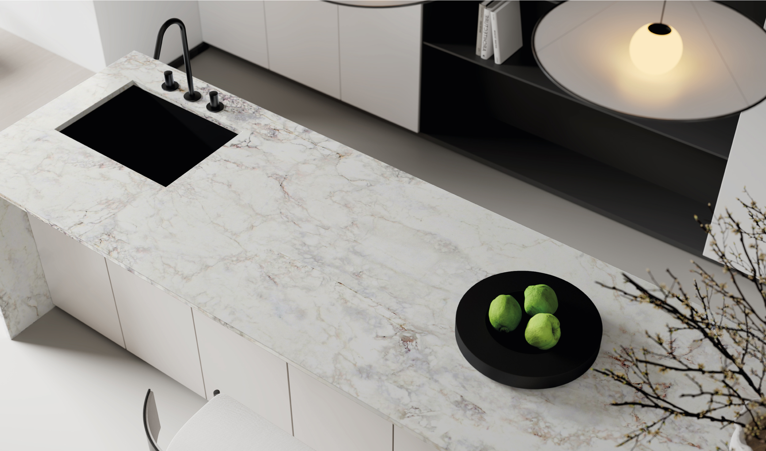 Zero S is a material designed with cutting-edge technology that maintains the highest standards of premium quartz surfaces but is free of crystalline silica in its composition.