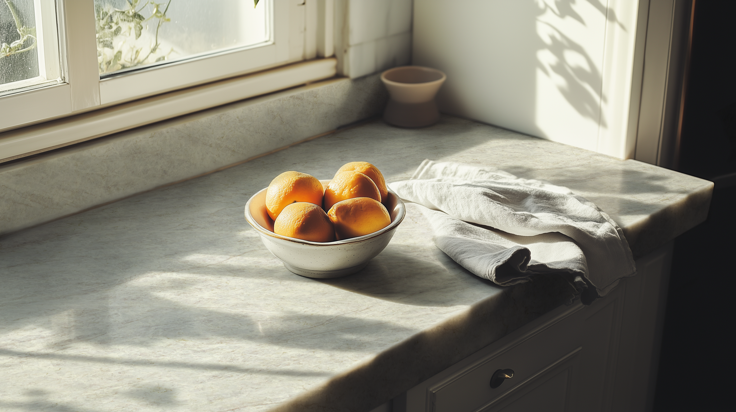 DESCRIPTION: A soft ivory base is delicately veiled with wisps of pale taupe and subtle cream, creating an impression of depth and subtle movement. Fine linear striations drift gently across the surface, evoking the elegance of wind-swept sands. Its muted sophistication makes it a versatile choice, effortlessly complementing any decorative style.
