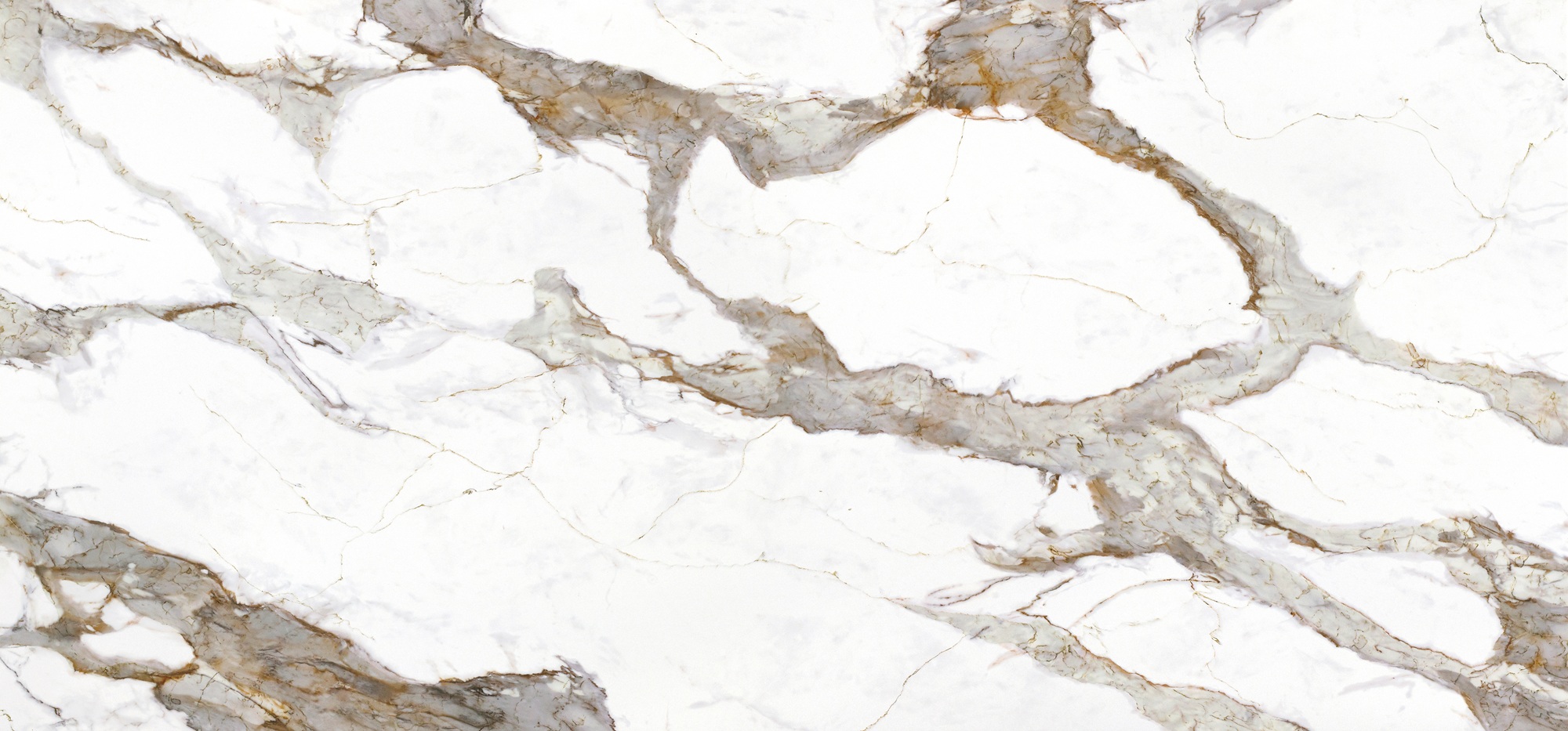 The beauty and grandeur of Calacatta Macchia Vecchia marbles are embodied in this stunning design, where powerful gray veins accented with golden threads create a dynamic interplay of tones, adding a striking realism to the surface. A radiant white background enhances the luminosity and elegance of this exquisite design.