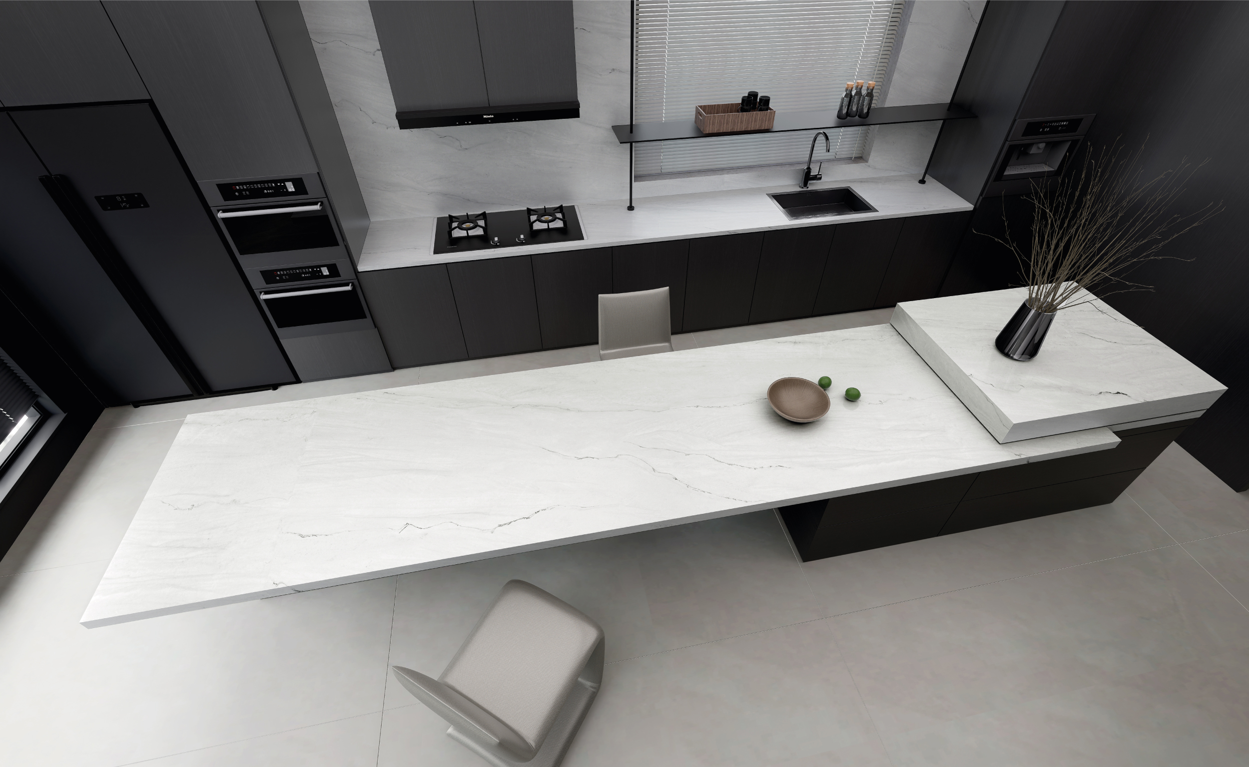 Zero S is a material designed with cutting-edge technology that maintains the highest standards of premium quartz surfaces but is free of crystalline silica in its composition.