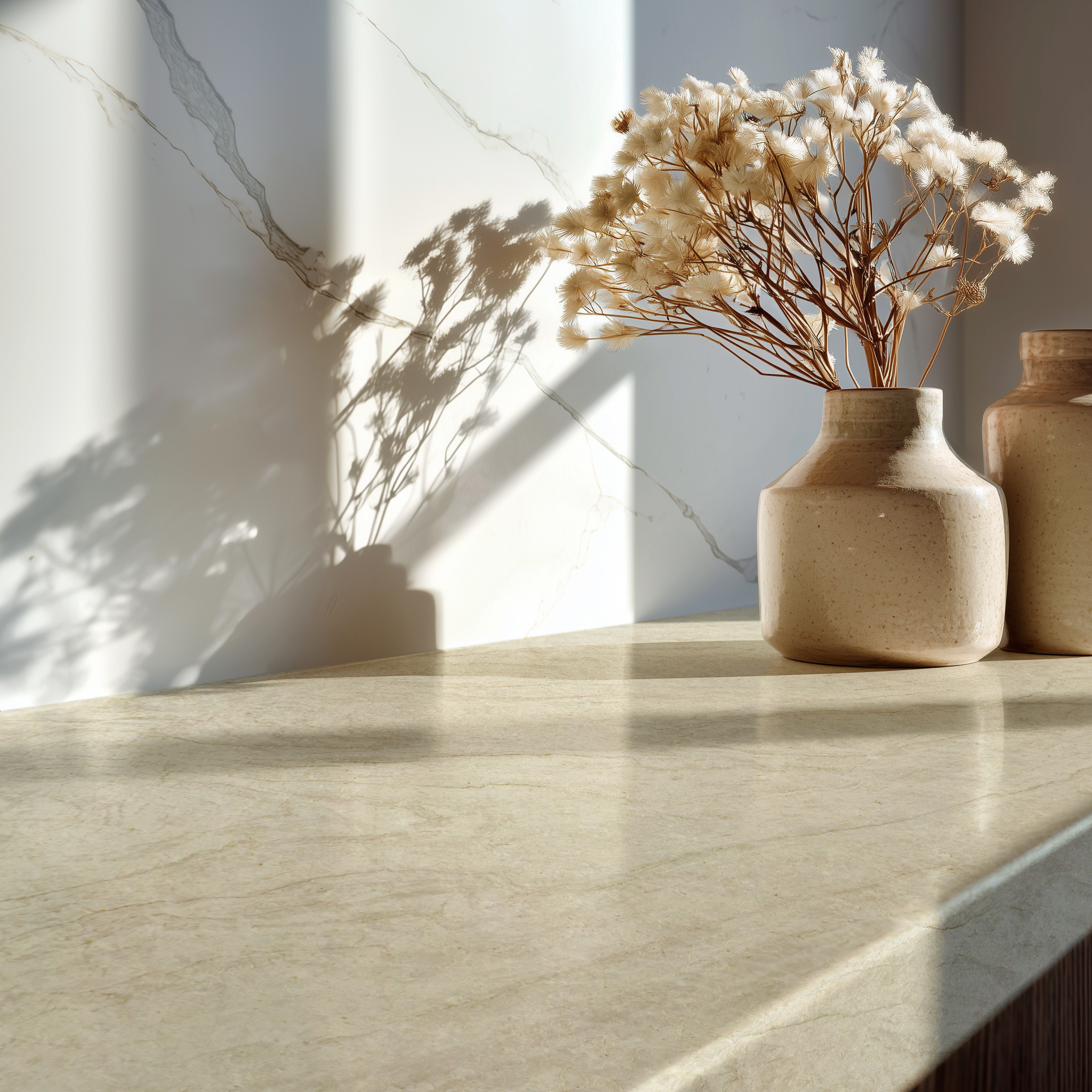 The color and pattern in Phi RGS run through the entire thickness of the slabs, allowing for flawless edge finishes without the need for mitering.
